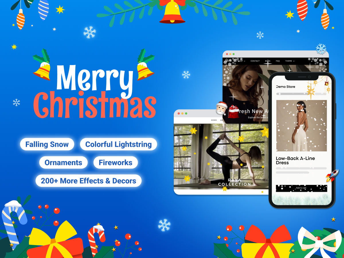 • Customizable Placement: Add falling effects and decorations to selected pages or across your entire store. Create the perfect holiday mood and boost sales with festive animations