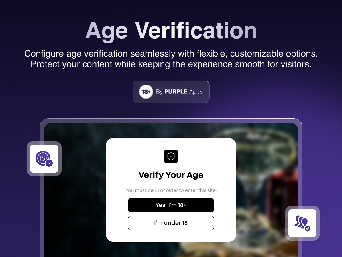 Keep Your Site Compliant - Restrict access to age-sensitive content like alcohol, tobacco, vape products, or mature material. Set a minimum age, choose how visitors verify, and let the app handle the rest.