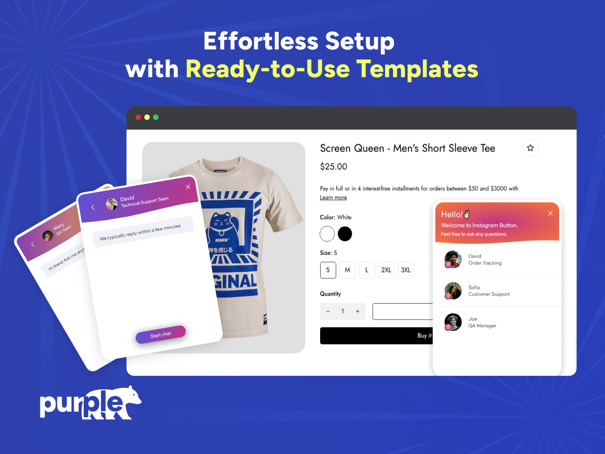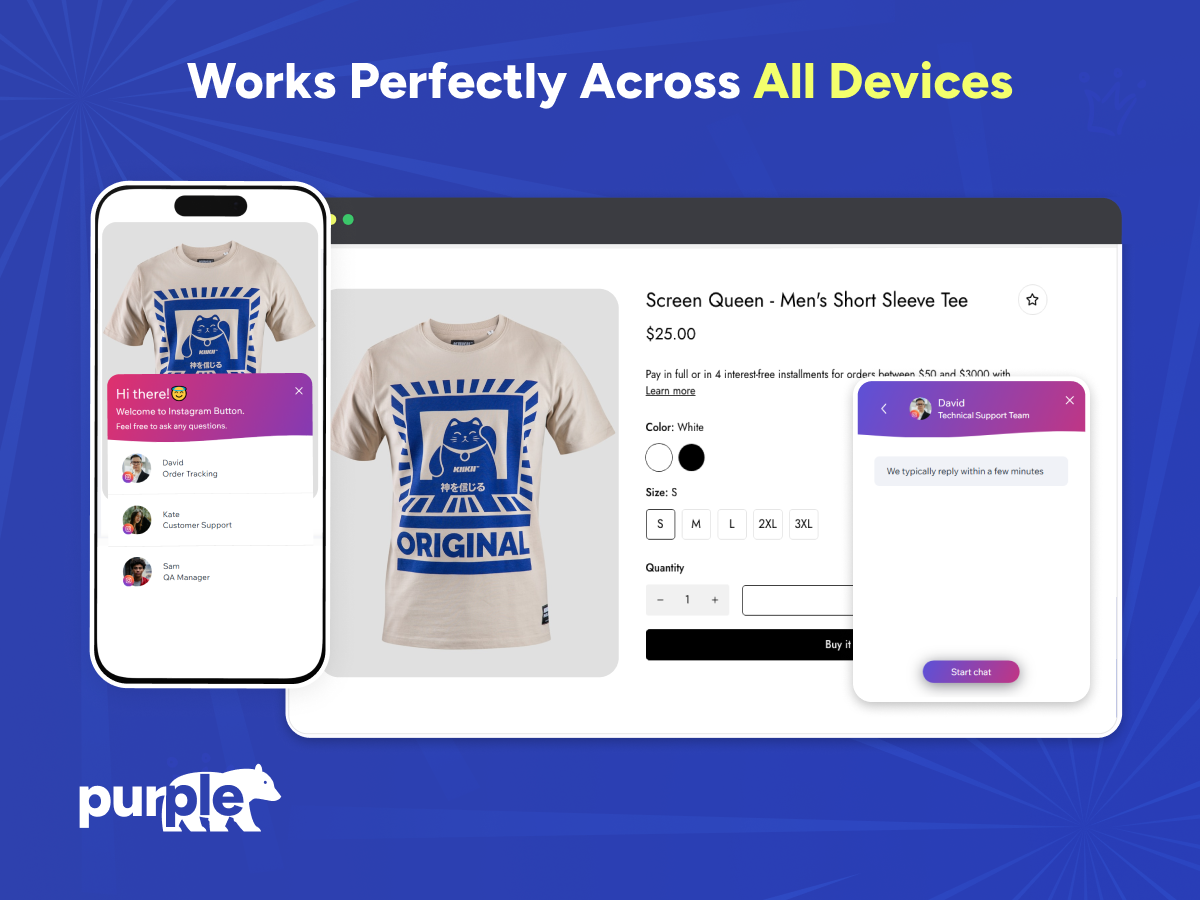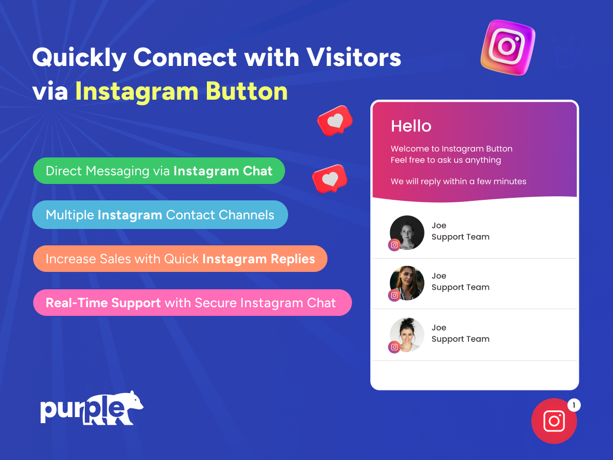 Легко вставте чат Instagram на свій веб-сайт за допомогою налаштованої кнопки, яка дозволяє взаємодію у реальному часі через безпосереднє повідомлення. Надайте відвідувачам швидкий, знайомий спосіб звертання через одну з найпопулярніших платформ у світі. Незалежно від того, чи вони досліджують продукти, чи потребують допомоги, ви можете залишатися підключені і оперативні, просто через Instagram.