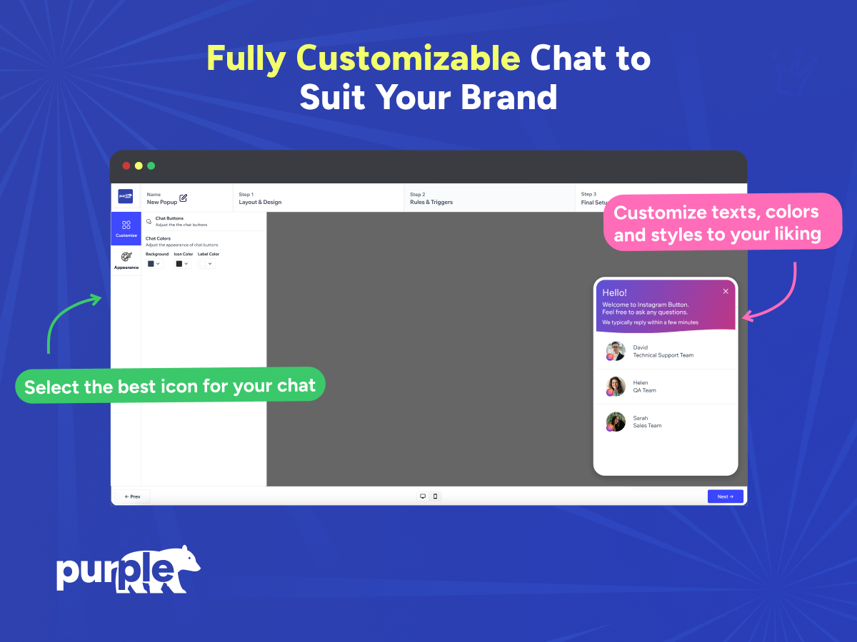 Повністю налаштовувана кнопка - налаштуйте іконки, кольори та вітання, щоб вони відповідали вашому бренду