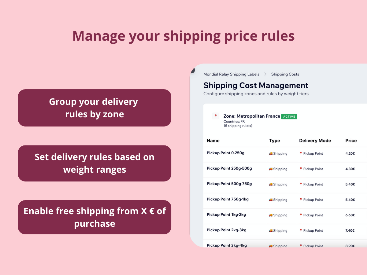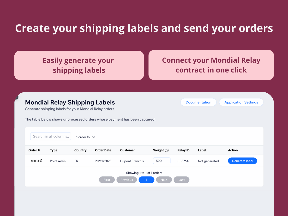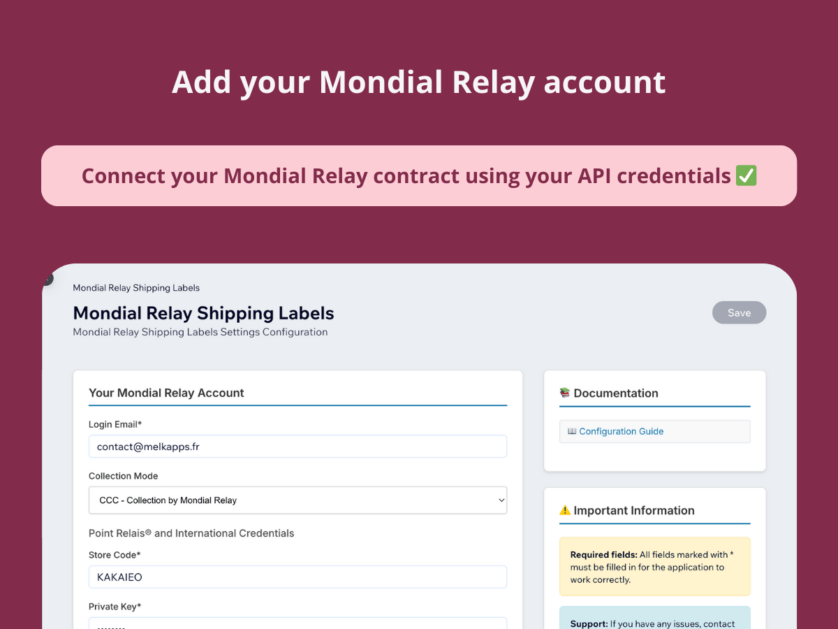 Easily generate and print Mondial Relay shipping labels directly from your dashboard, with no manual data entry. Connect your Mondial Relay account, create shipping labels in just a few clicks, download PDFs, and print them instantly. Save time, reduce errors, and simplify your order fulfillment process. Whether you ship a few packages or hundreds, this app streamlines your workflow and helps you manage your deliveries efficiently. Disclaimer: This app is an independent tool and is not affiliated, authorized, or endorsed by Mondial Relay.